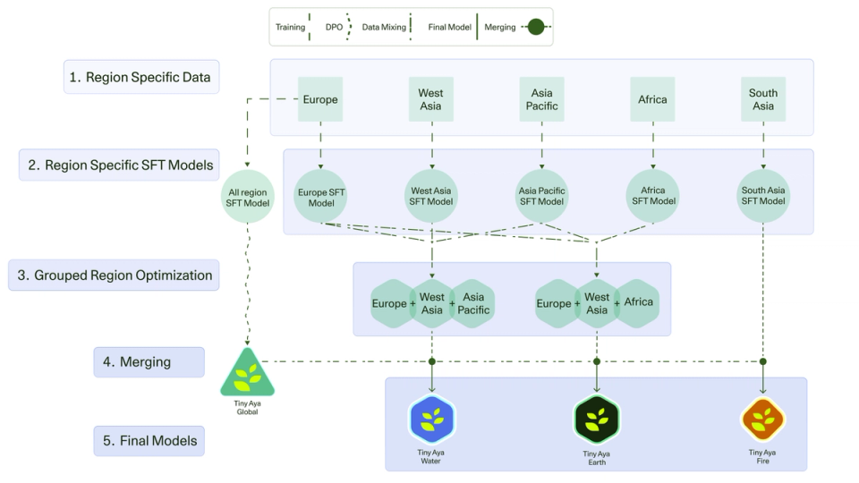 Tiny Aya, a compact 3.35B-parameter multilingual model, achieves state-of-the-art translation and understanding across 70 languages through innovative training and region-specialized variants, offering an efficient, balanced path for practical multilingual AI deployment.
